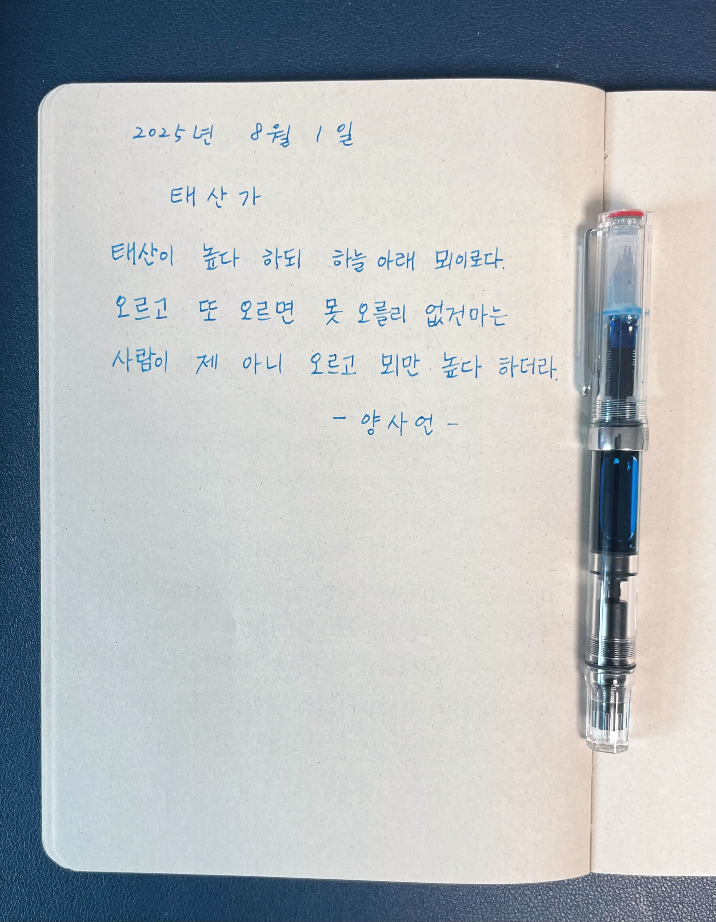 태산이 높다 하되 하늘 아래 뫼이로다.