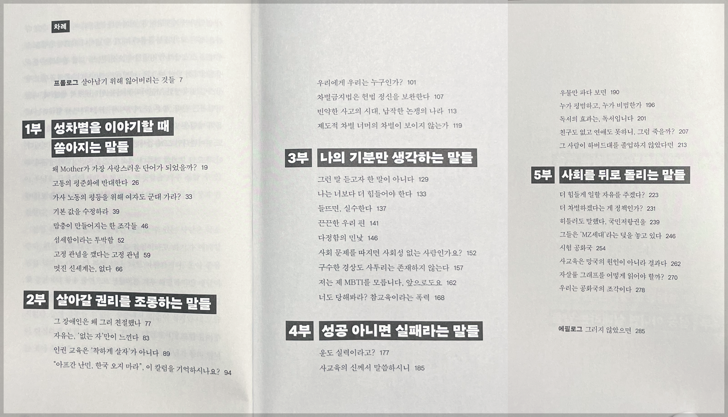 타인의 고통에 냉소로 응답하는 망가진 소통, 젠더, 인권, 공동체에 대한 논쟁을 한마디로 끝내려는 게으름. 우리의 소통이 여기까지 추락한 이유는 무엇일까? 어쩌면 우리는 성공한 이의 고군분투를 제외한 모든 이야기에 귀를 닫아버렸는지도 모른다. 사회학자 오찬호는 젠더에서 사회에 이르는 5가지 주제를 통해 한국 사회의 핵심을 이루는 능력주의, 생존주의, 그리고 우월함과 열등함의 수직구조를 해부한다. 생존 이외에 아무것도 중요하지 않다는 생각은 타인의 삶을 납작하게 찌그러뜨리는 폭력으로 이어진다. 빈부격차에 대한 우려는 "북한에 가라"라는 빈정거림으로, 사회 구조에 대한 문제 제기는 "사회성 없다"라는 조롱으로 마무리되고, 그러한 폭력에 대한 성찰조차 쓸데없는 것으로 여겨진다.
