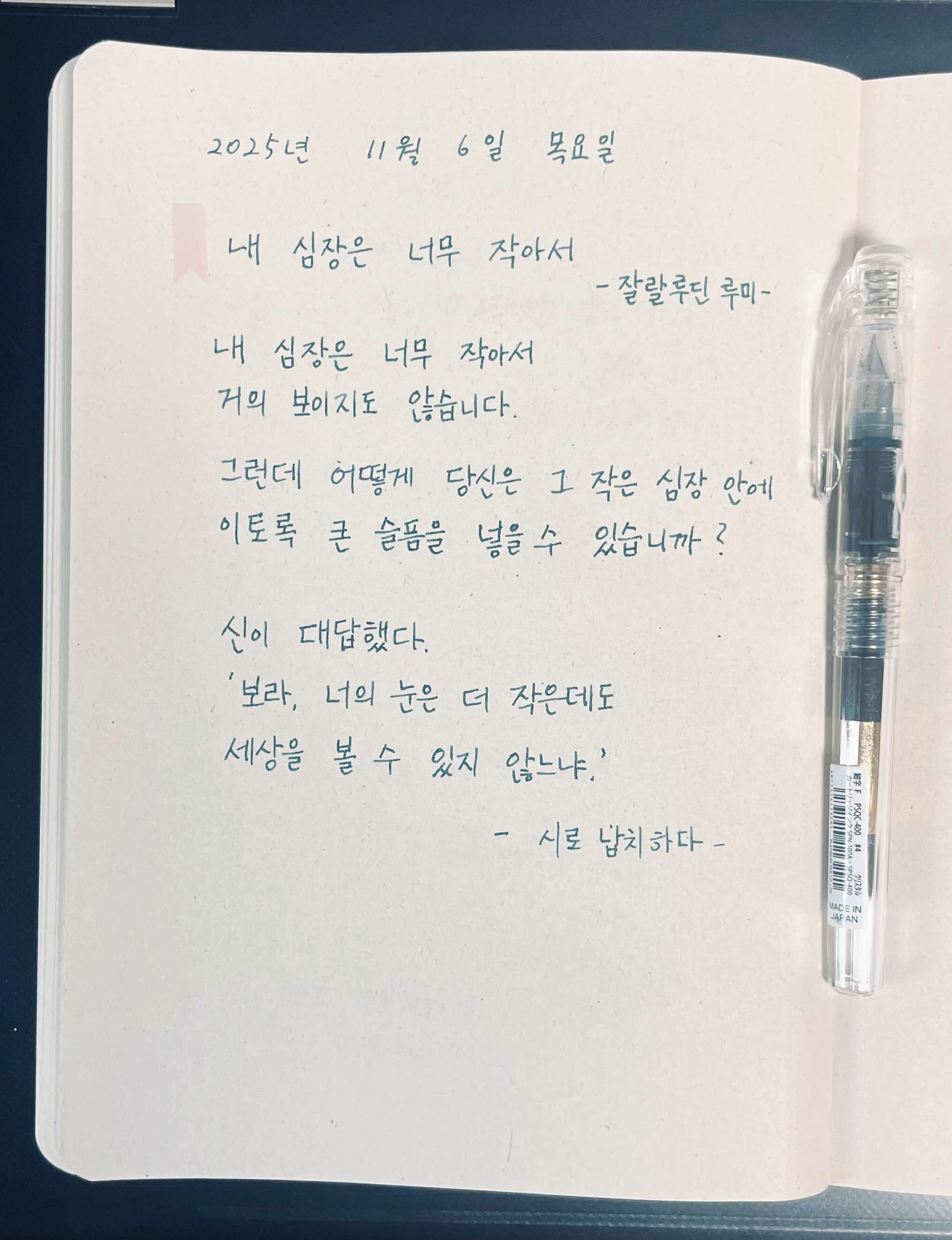 오늘은 '잘랄루딘 루미'시인의 시 '내 심장은 너무 작아서'입니다.