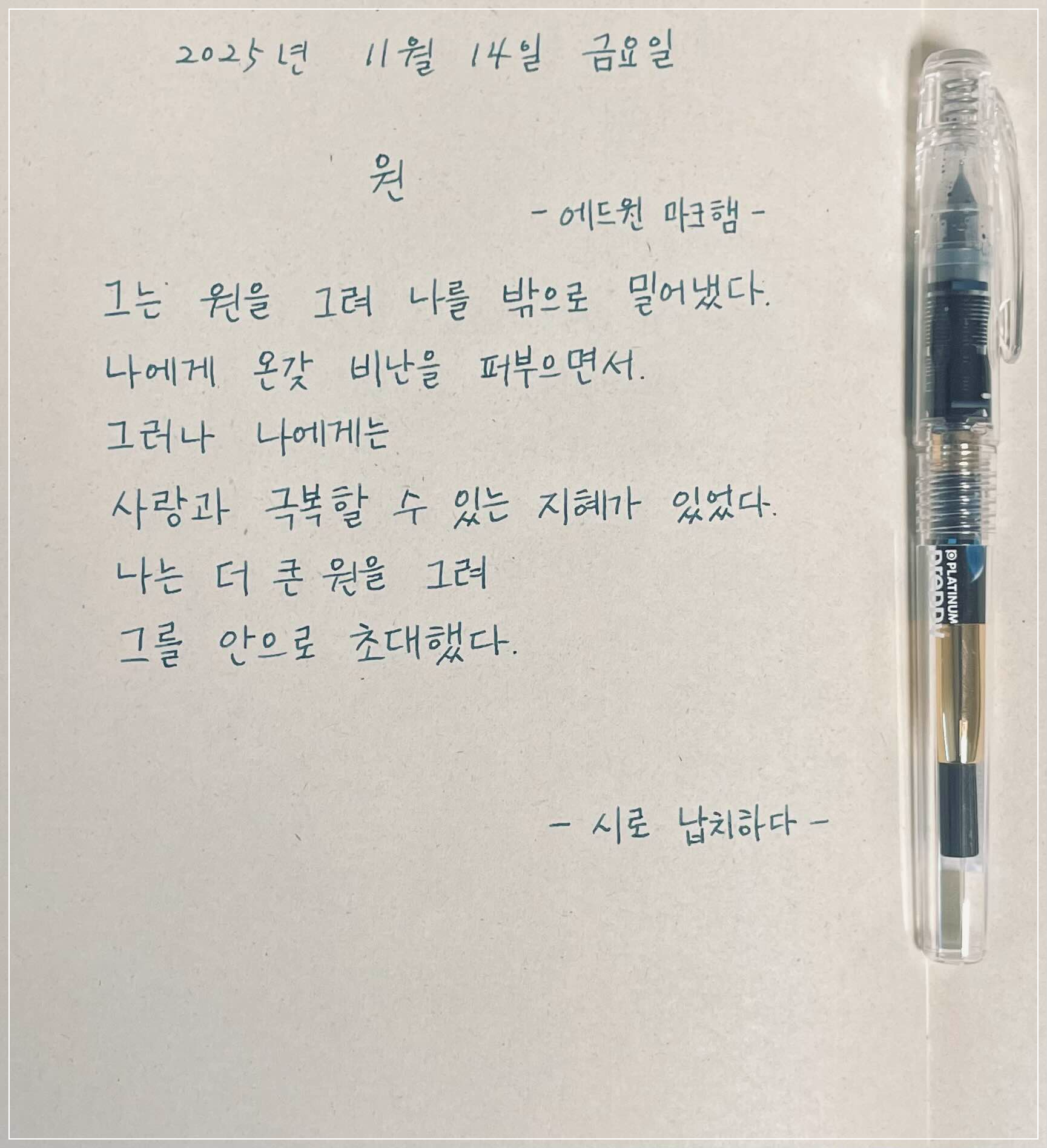 | 오늘의필사 : 동사 '부딪치다'(요시노 히로시) (31) | 2025.11.16 |