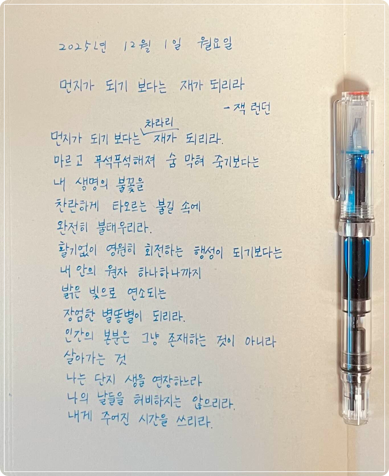 | 오늘의필사 : 어떤 것을 알려면(존 모피트) (15) | 2025.11.28 |