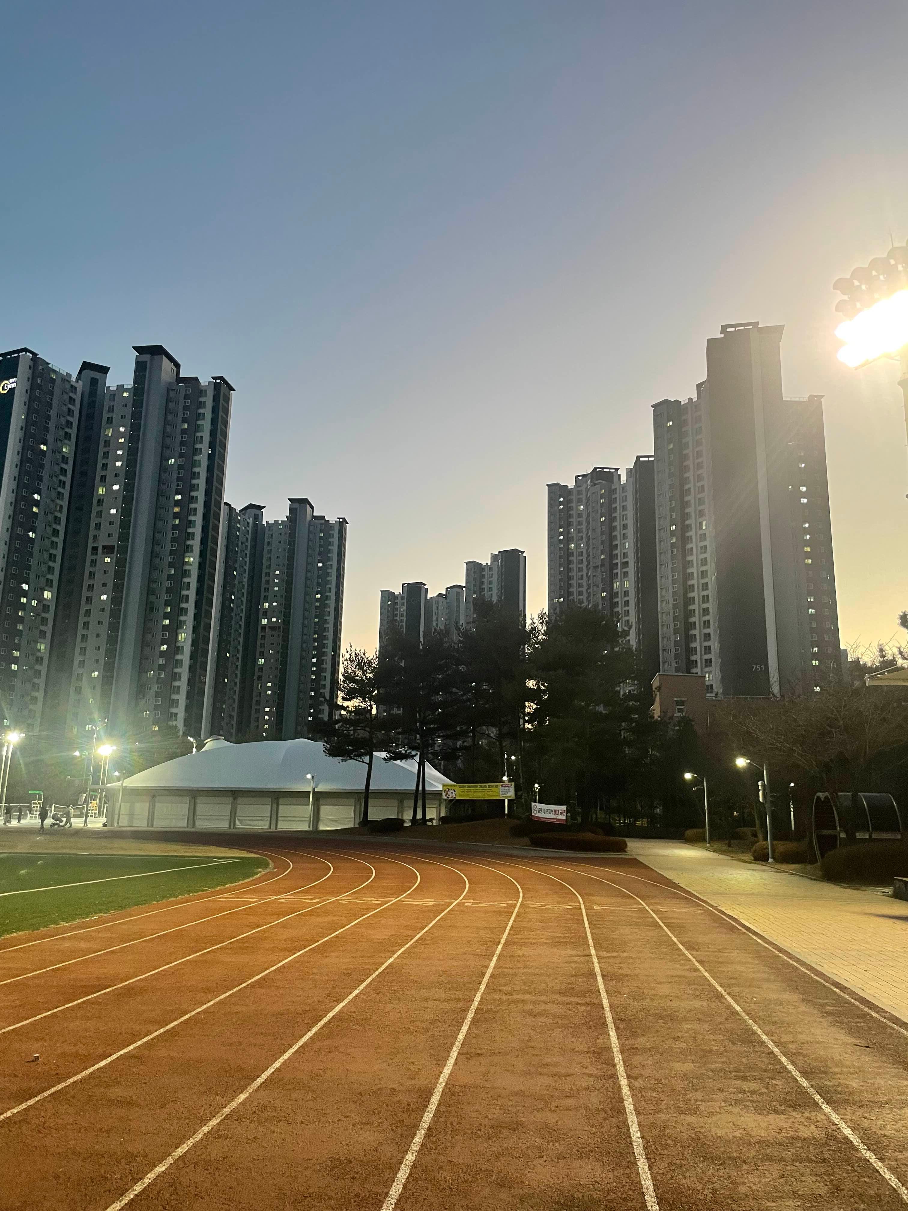 다른 부부가 트랙에서 열심히 같이 뛰는 모습이 다정해 보입니다.