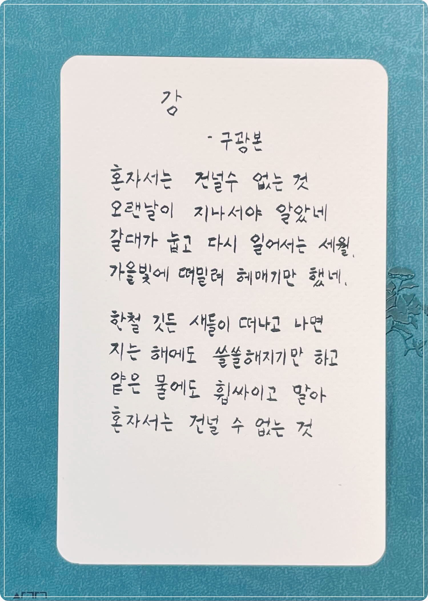 | 오늘의 필사 : 우화의 강(마종기) (18) | 2025.12.11 |