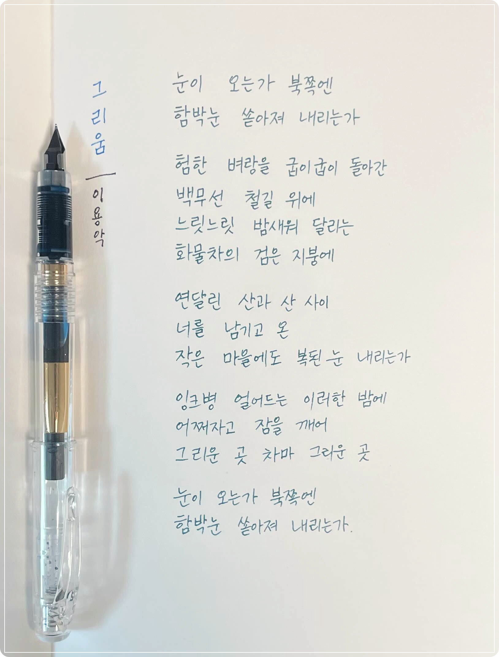 잉크병 얼어드는 이러한 밤에