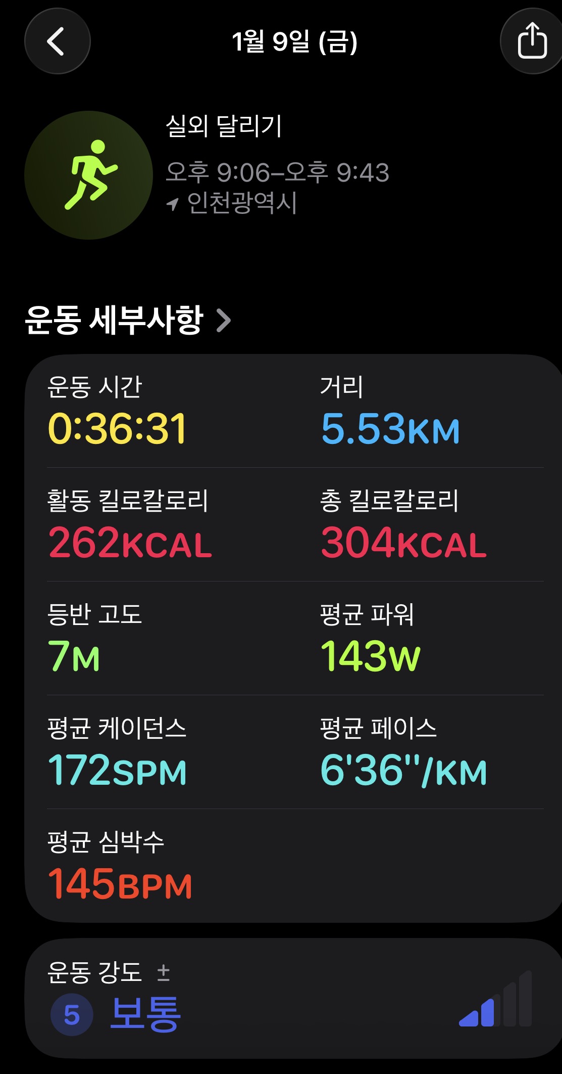 36분, 5.5km를 뛰었습니다.