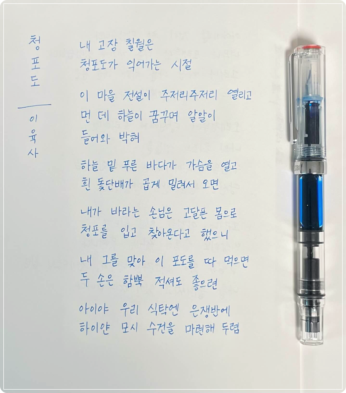 민족시인, 애국 시인, 지사 시인으로 불리는 이육사 시인에게 이런 시가 있다는 건 하나의 이변이고 기적 같은 일이다. 어쩜 이렇게도 입에 척척 달라붙는 문장이 있을까.