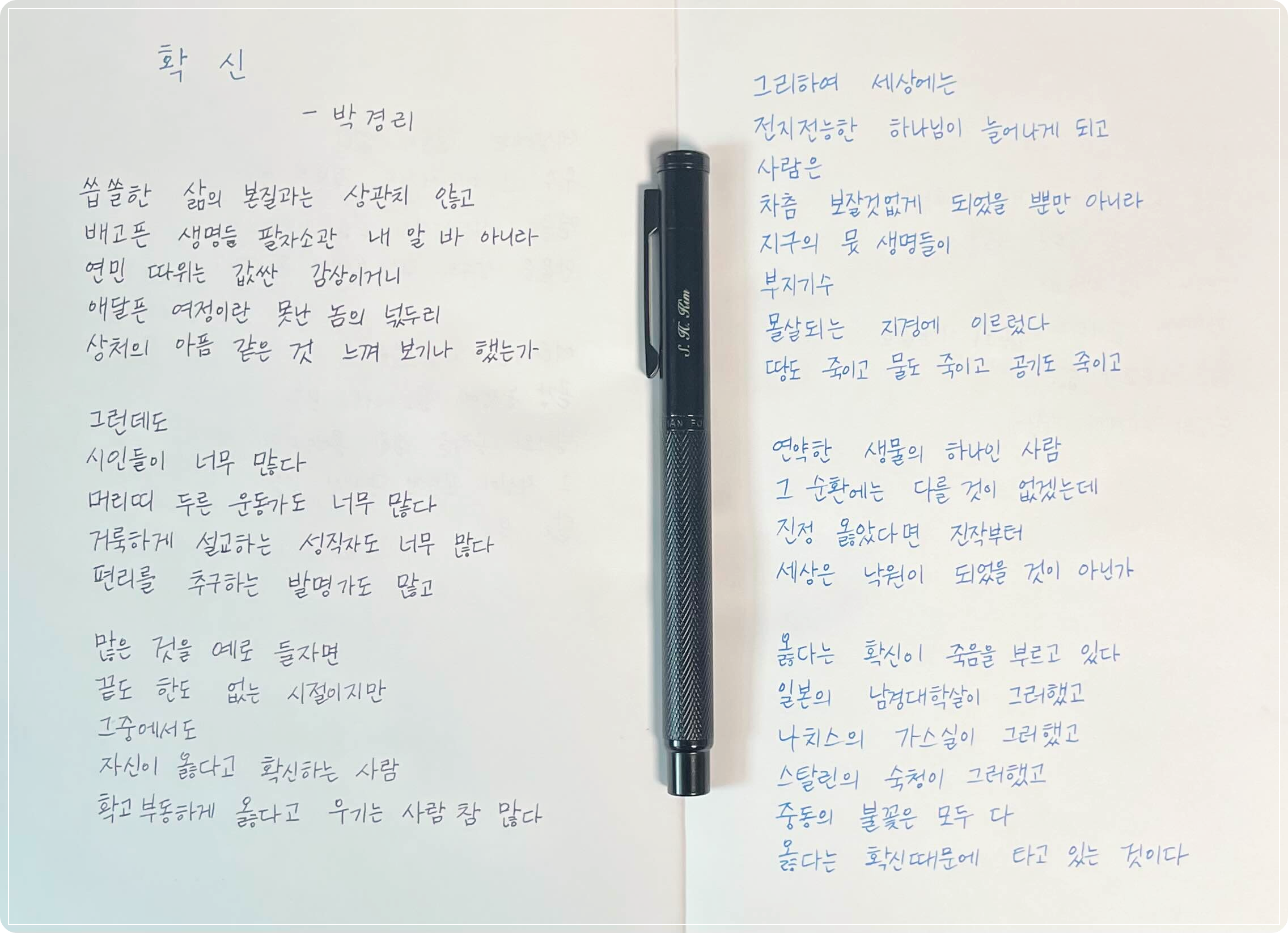| 오늘의 필사 : 핵폭탄(박경리) (27) | 2026.03.16 |