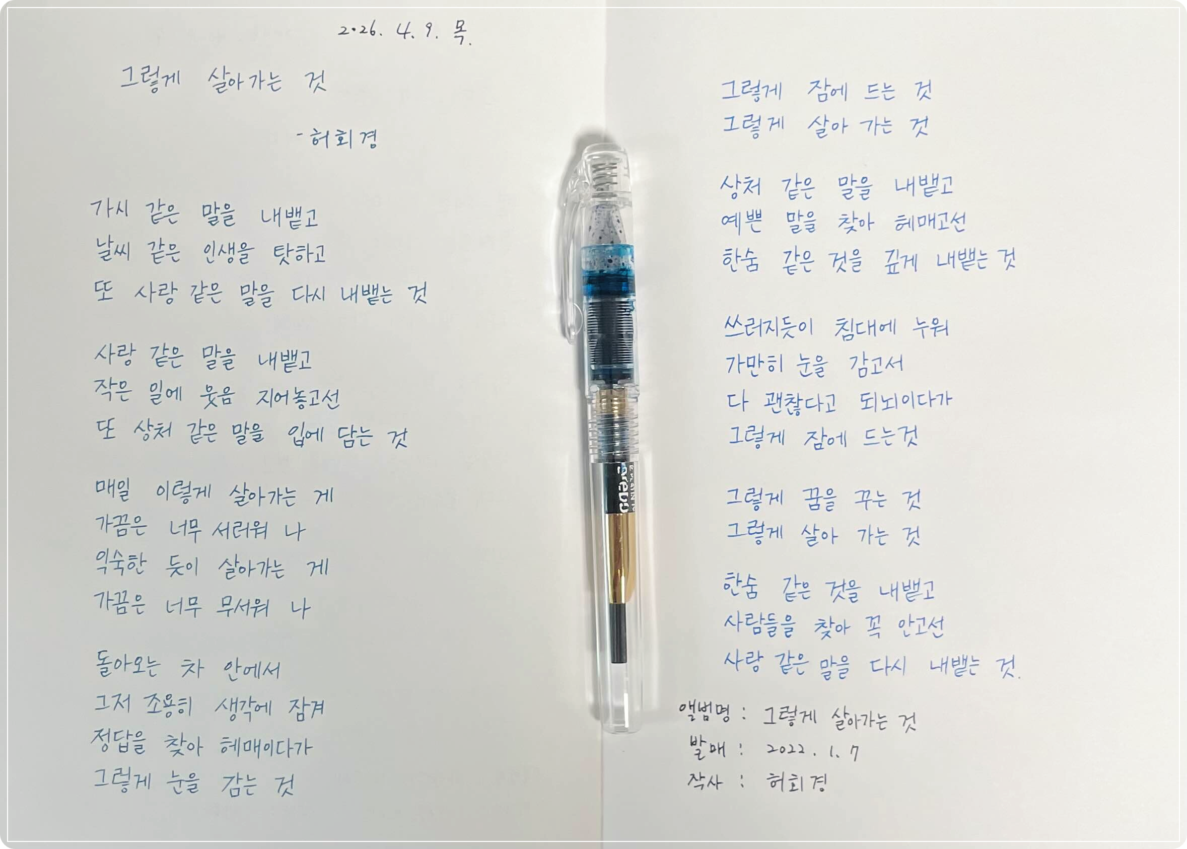 | 오늘의 필사 : 달팽이(패닉) (7) | 2026.04.10 |